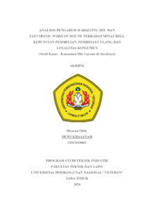 KHASANAH, DEWI (2026) ANALISIS PENGARUH MARKETING MIX DAN ELECTRONIC WORD OF MOUTH TERHADAP MINAT BELI, KEPUTUSAN PEMBELIAN, PEMBELIAN ULANG DAN LOYALITAS KONSUMEN (Studi Kasus : Konsumen Mie Gacoan di Surabaya). Undergraduate thesis, Universitas Pembangunan Nasional "Veteran" Jawa Timur.